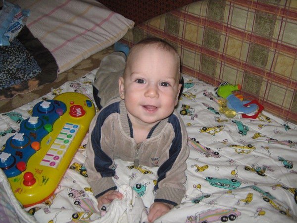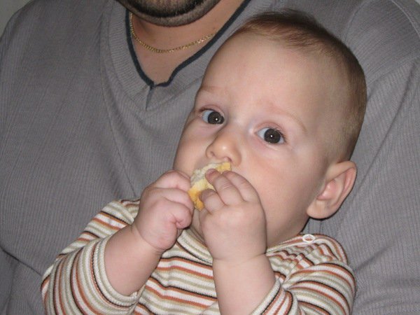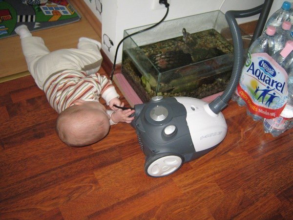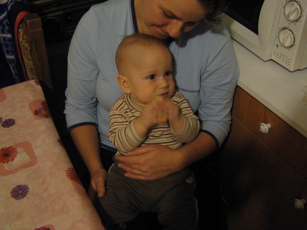 Egyébként minden szép, és jó (de tényleg), elmúlt 8 hónapos, naponta kétszer eszik szilárdat, délben főzeléket, délután gyümölcsöt, ennek ellenére napi 6-7-szer szopik még.
