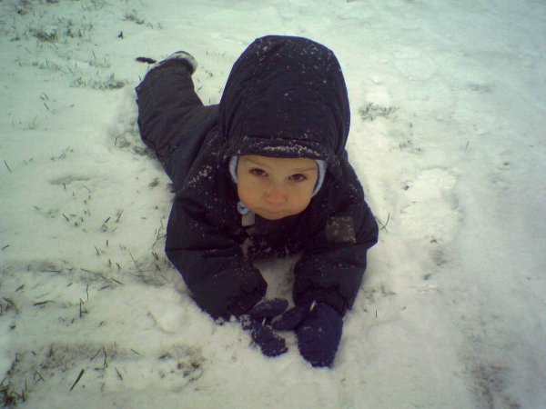 Annak köszönhetően, hogy Dömét először egy könnyen legyőzhető havas közegben szoktattam a téli körülményekhez (elolvadt a hó, mire kimentünk az első havazás után, így csak kis foltokkal találkozott), a nagyobb akadályt is bátran, ügyesen vette. Képek erről, valamint a Kabát Alatt Horkantó Berciről (már ami látszik belőle :D):