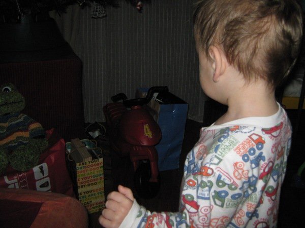 Döme valamikor éjfél körül jött át hozzánk, de csak arra riadtam fel, hogy már az ágyunkban van, így arról lemaradtam, hogy a kivilágított karácsonyfát meglátogatta-e. Mindenesetre reggel 7-kor úgy jött ki a szobából, mint aki tudja, mi várja a nappaliban, hihetetlen volt!