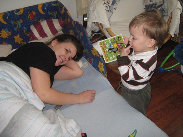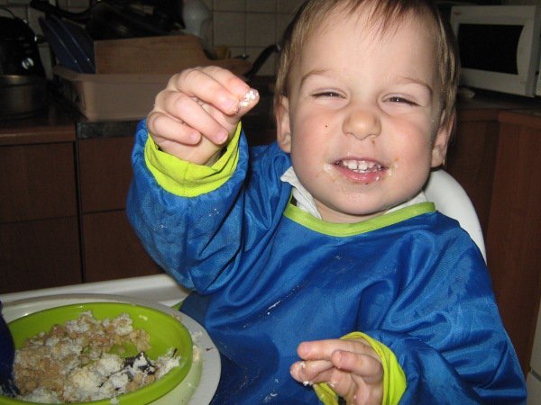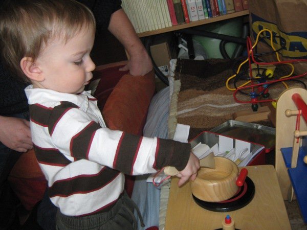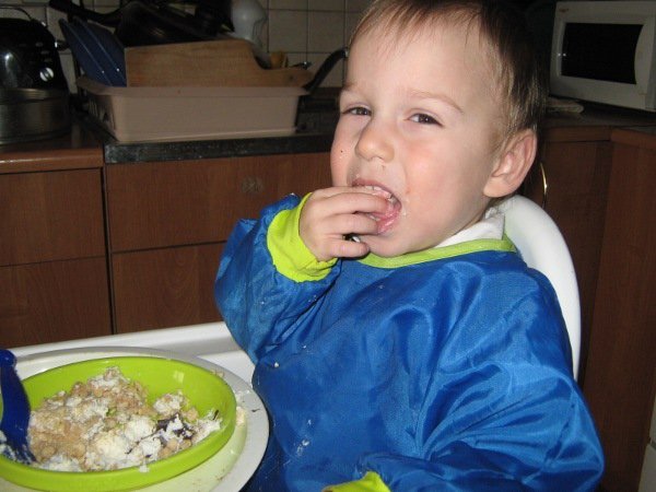 Beszéd: ööö… azért alakulunk, nézzük csak, mi az, amit már mond: Anya, apa, Meme (Döme), Erci (Berci), Nónyi/Óni (Móni), tattrot (traktor), tszetsze (kekszet), tútótóta (túrótorta), inni, dzí (víz), kaka, csüccside, kukucs, kukucside, jó, cita (cica), acicicide (egészségedre, ezt most tanulta), add ide, adsz… most ennyi jut eszembe.